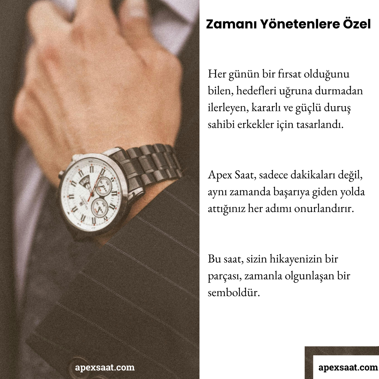 Çizilmeye dayanıklı safir camdan, parlak paslanmaz çelik kordona kadar her detay, en yüksek standartlarda üretilmiştir. Kalite, bir vaat değil, temel prensibimizdir.