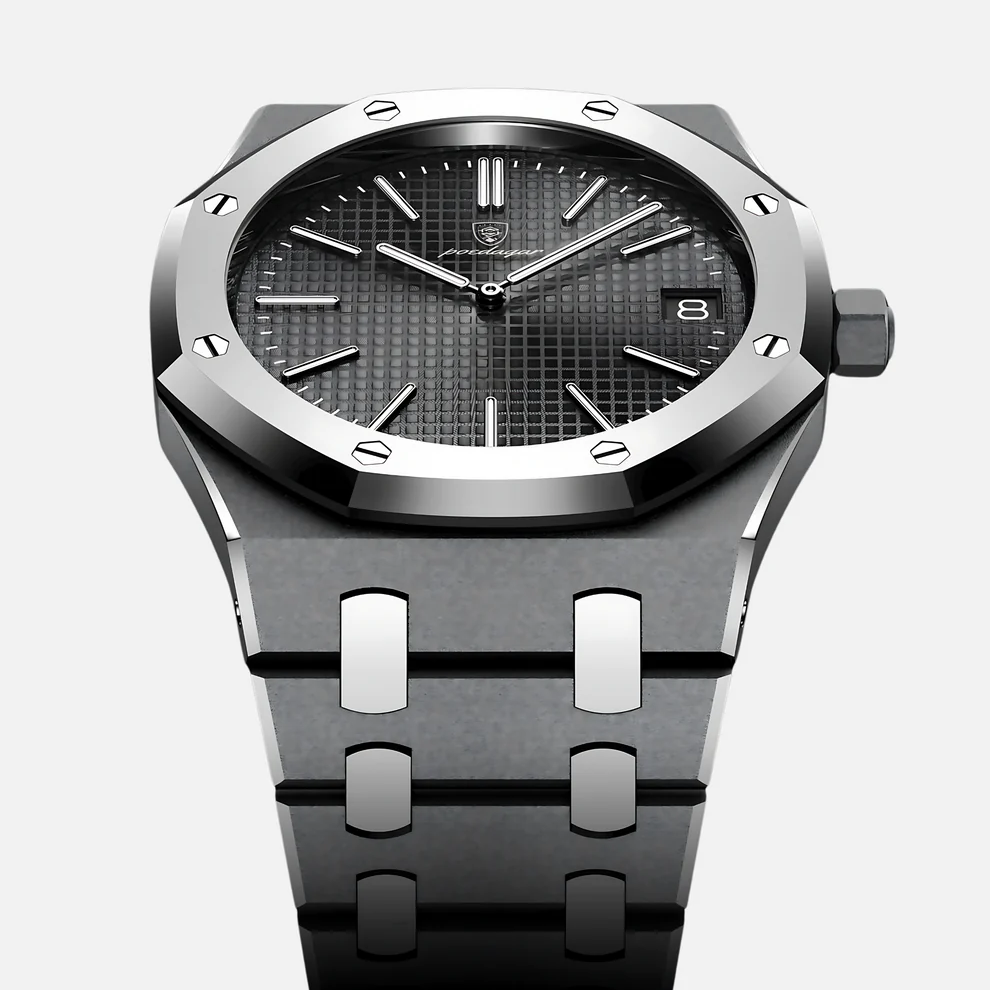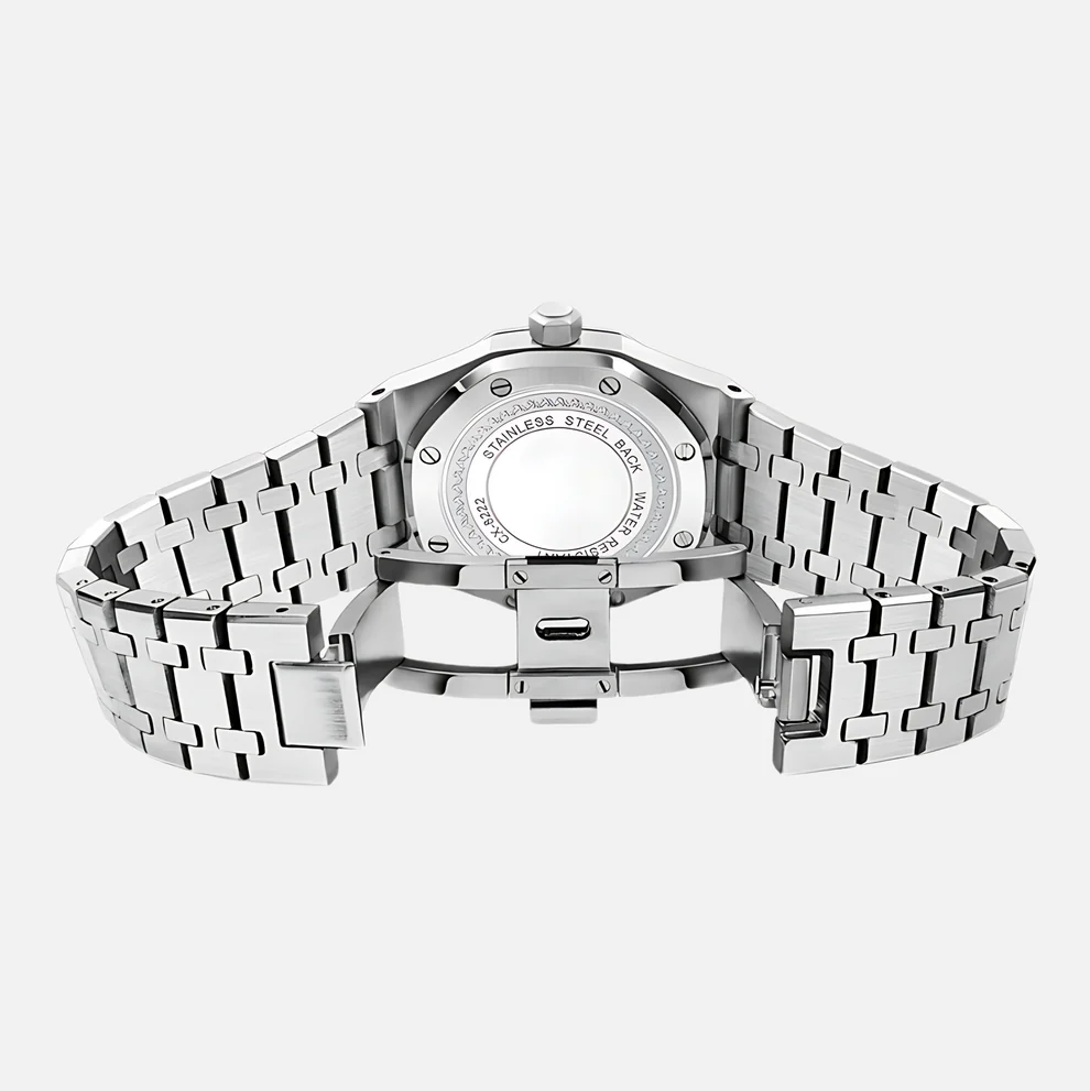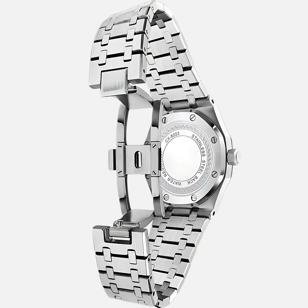 Çizilmeye karşı tamamen dayanıklı safir camı, en zorlu koşullara bile meydan okuyan su geçirmezlik özelliği ve korozyona karşı dirençli paslanmaz çelik yapısıyla kaliteyi ve dayanıklılığı zirvede buluşturur. Her bir detay, güçlü duruşunuzu en zarif şekilde yansıtmak için özel olarak tasarlanmıştır.