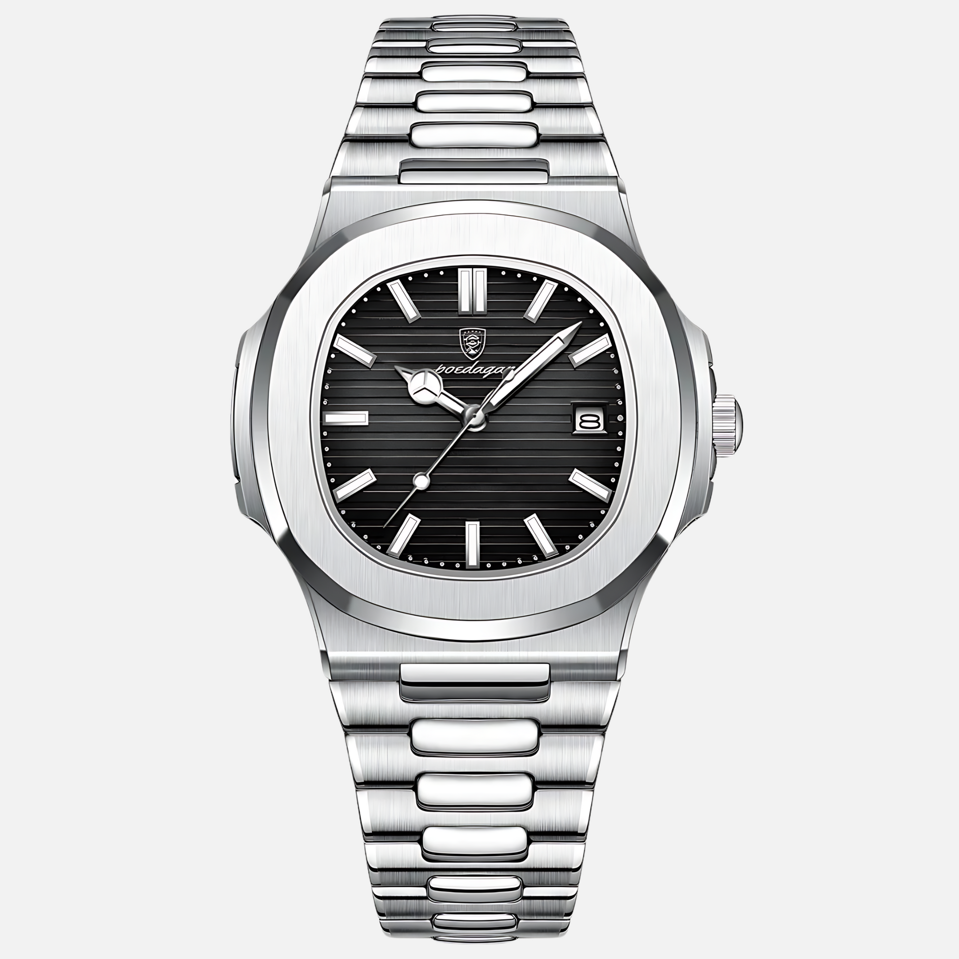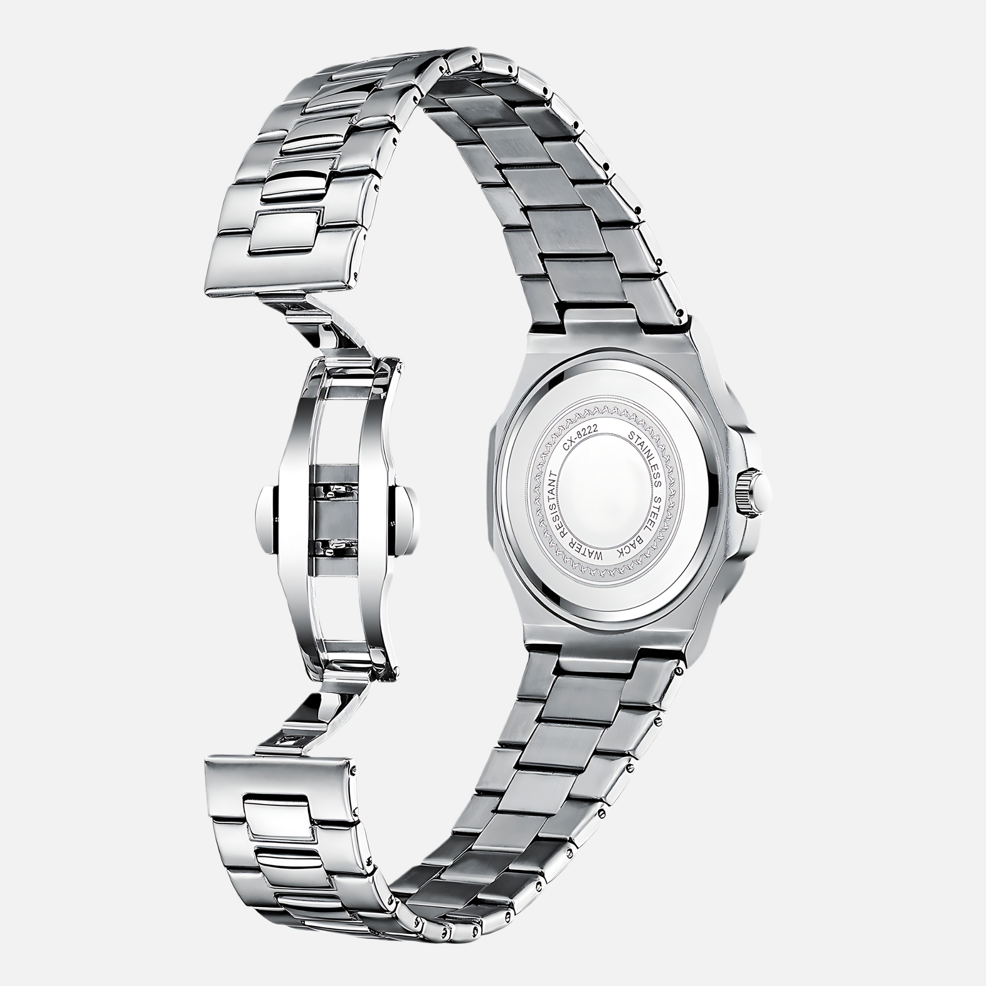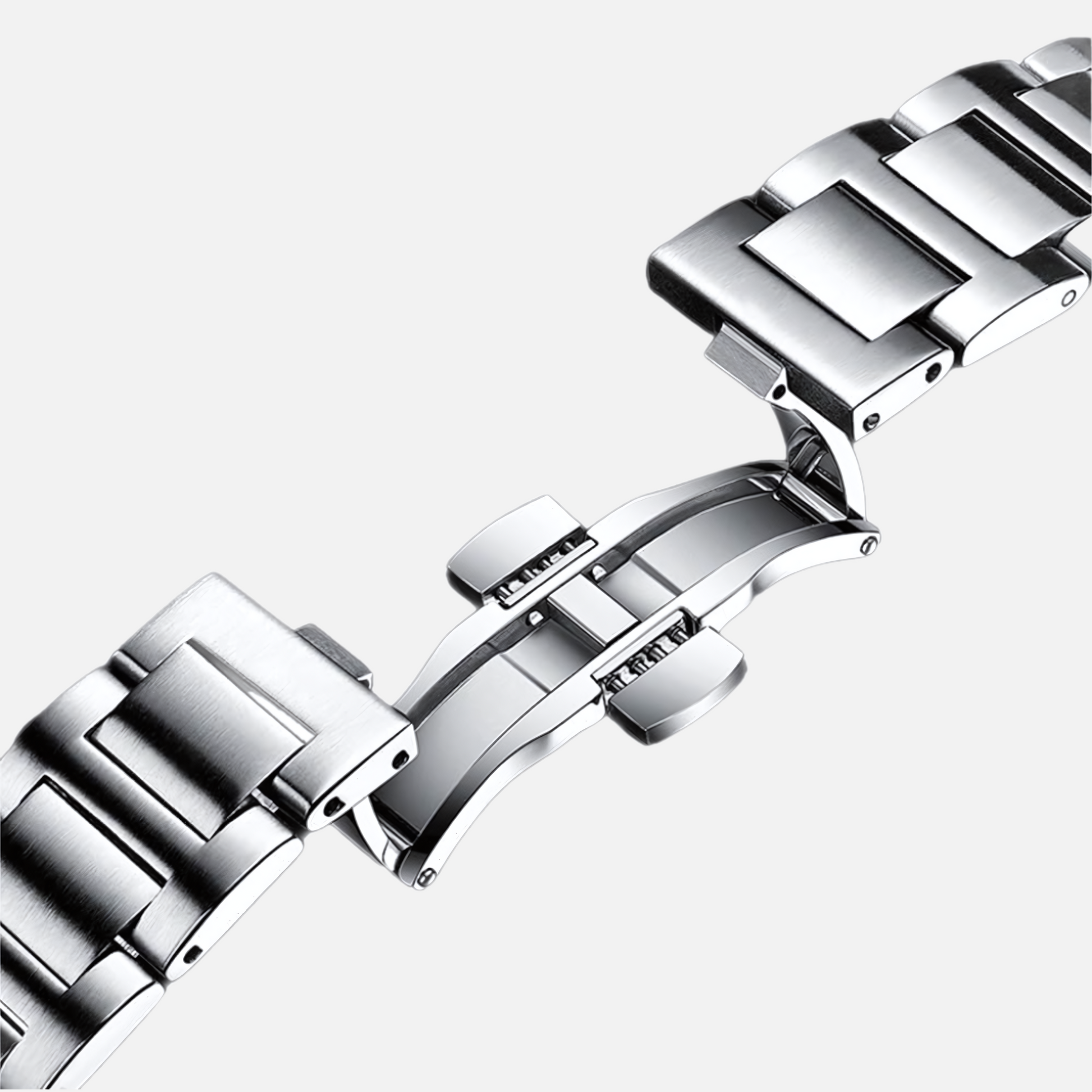 Çizilmeye karşı tamamen dayanıklı safir camı, en zorlu koşullara bile meydan okuyan su geçirmezlik özelliği ve korozyona karşı dirençli paslanmaz çelik yapısıyla kaliteyi ve dayanıklılığı zirvede buluşturur. Her bir detay, güçlü duruşunuzu en zarif şekilde yansıtmak için özel olarak tasarlanmıştır.